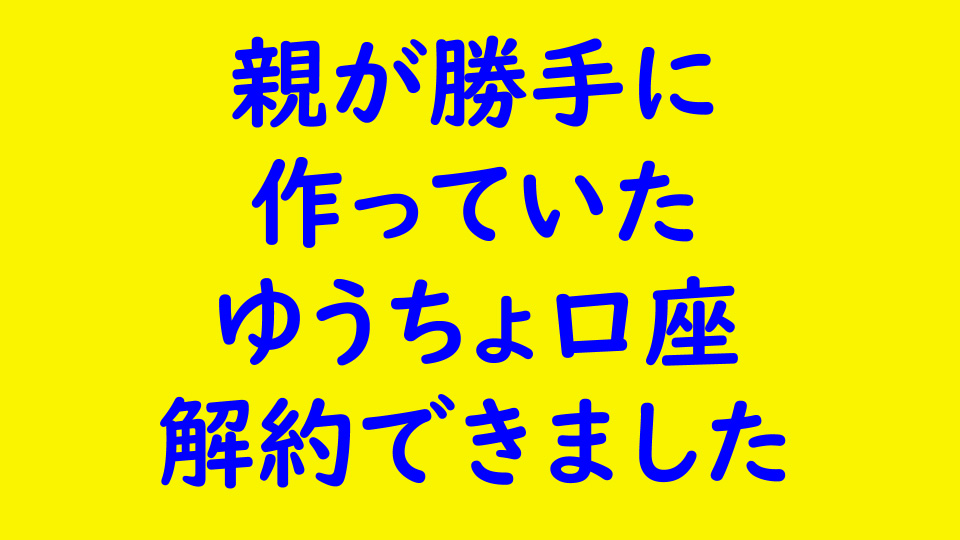 さあー、これで親が勝手に作っていた迷惑口座はなくなったはず。