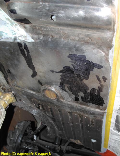 先端のリブ加工部分もずっとサビ取りしたいのですが、作業スペースの関係で先端側は作業できません。(車体の向きを入れ替えて車体前側の作業になったときに先端部分は作業する計画です)