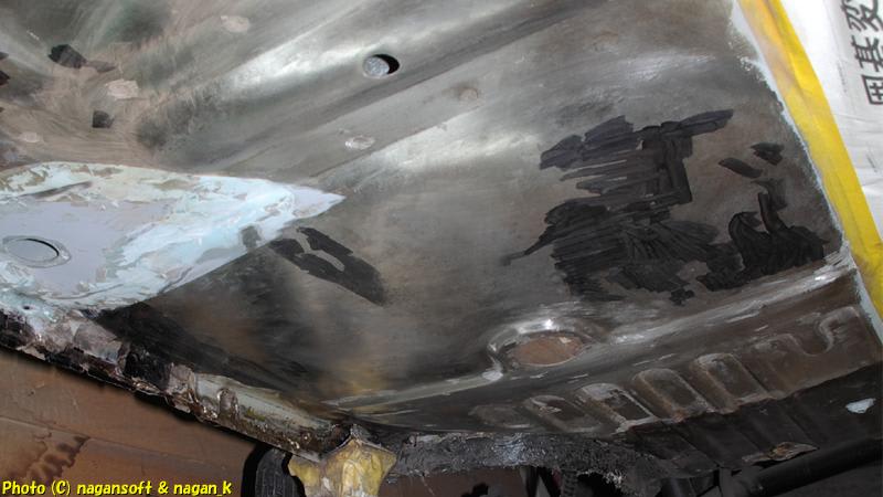 サビ転換剤は、合わせの縁以外にも床裏部分にもなすっている箇所があるのですが、そこは細いミミズ錆びや、小さくて深いリューターの刃先が突けないような点錆があった部分です。