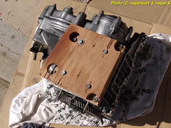 数年前に作業用に(エンジンを引きずり回しても痛めない目的で)、ミッション下カバーを廃材ででっち上げているのです。