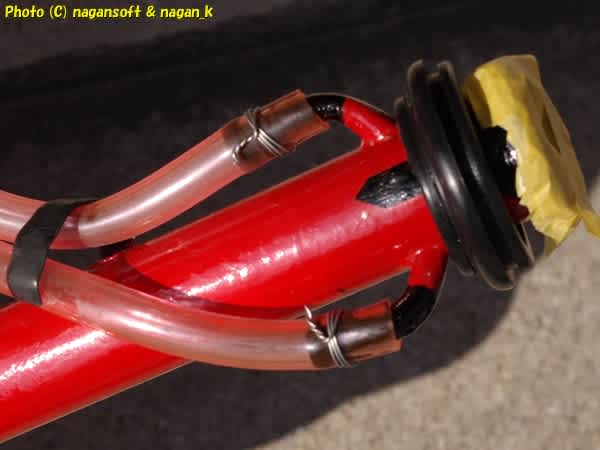 燃料ホースをワイヤーで締め上げます。これが一番時間がかかってます。面倒なことこのうえないです。