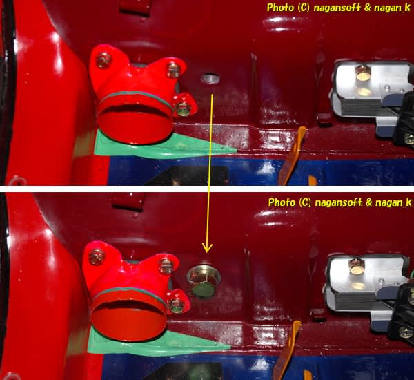 オリジナルのオープナーワイヤーが取り付けられていた部分をボルトで塞ぎました。