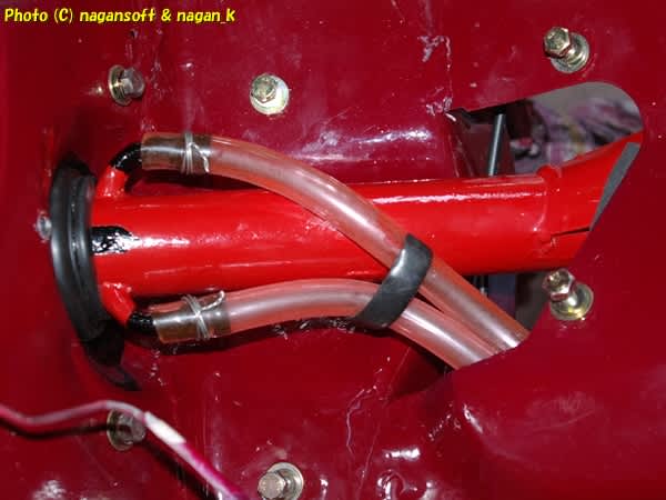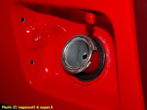 給油口がくぐる車体の穴にグロメットをしっかりはめます。