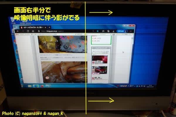 故障としては、画面が横に伸びて両端が見切れる状態です。フォーカスと色合いは大丈夫です。モニターの横ワイド表示を調整してもその調整幅を超えて横に伸びているんです。