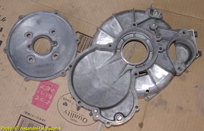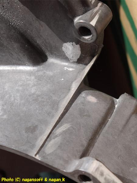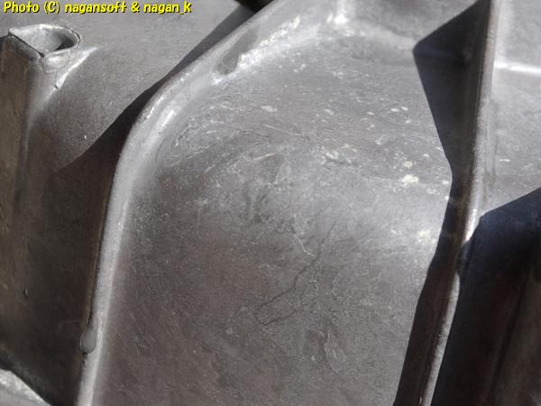 しかし、クラッチハウジングはオイル汚れもそうではなく、アルミ肌露出に長いことエンジンルームの汚い空気にさらされ続けました。その結果がミミズが這っている白錆なんです。