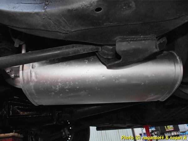 私のクラウンワゴンは、マフラーの太鼓が2個ついてまして、前側が銀色、後ろの出口側が黒色なんですよ。