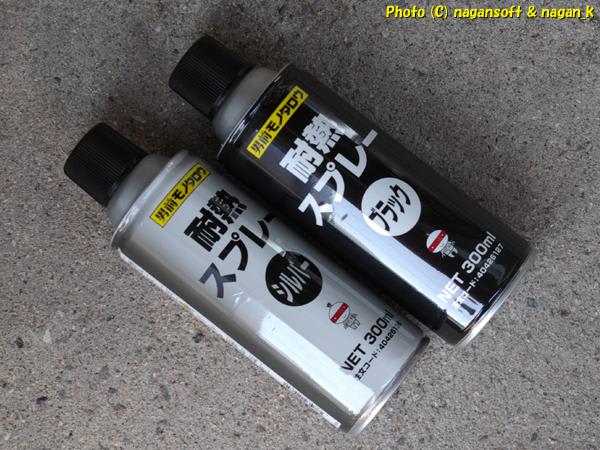そうそう4日前に後ろのマフラー太鼓についてはサビ落とし済み、なんとか手持ちの使いかけ耐熱スプレーで軽く塗装してますが、塗装肌が気に入らないので改めてしっかりと塗りこみました。