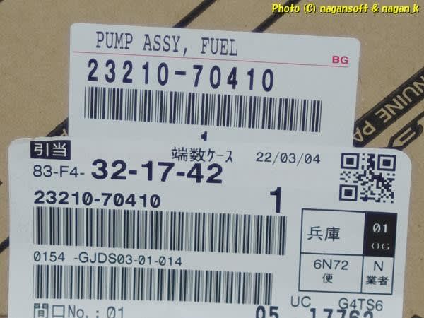 ポンプ本体に記されている部品番号は、#23210-70410 と #195100-1622 です。