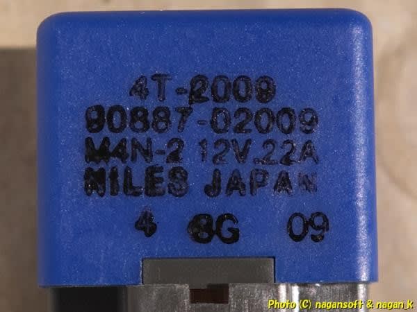 なんでパーツカタログと実際に装着されているリレーの型番が違うんだろうとネットで調査したら、#90987-02010 が廃盤になり、#90987-02009 に統合されているらしいです。
