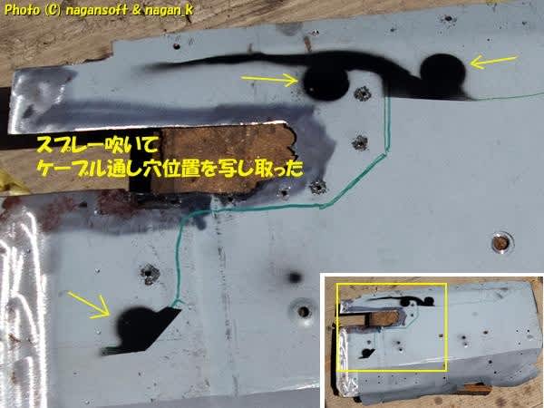 それでも痴呆親父が適当に穴開けしている穴サイズを信じることにします。だって今となってはオリジナルの床がわからないし、オリジナル状態のケーブルでもないので、オリジナルの穴サイズがわからないからです。
