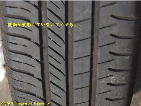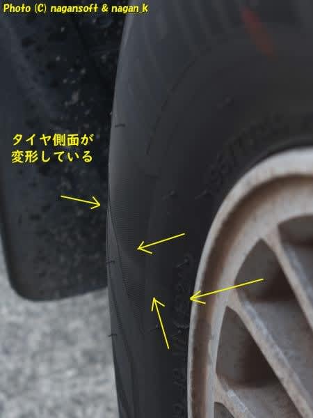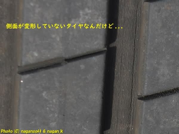 そのときに「リヤタイヤが変形しているってことはフロントも怪しいかもよ」となりましてタイヤ屋さん技術者と一緒に目視点検したんよね。