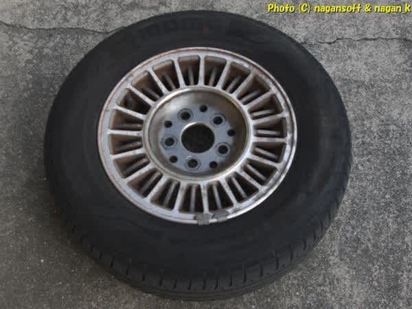 前日にタイヤ屋にてお持ち帰りとした左後輪の側面変形していないタイヤ、そして、今回の左前輪の側面変形していないタイヤを前輪に組み戻すことにします。