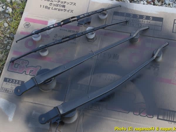 ワイパーブレードとアーム部分を、モノタロウさんの水性シャーシブラックでお手軽塗装しました。