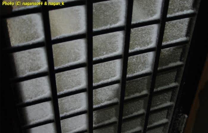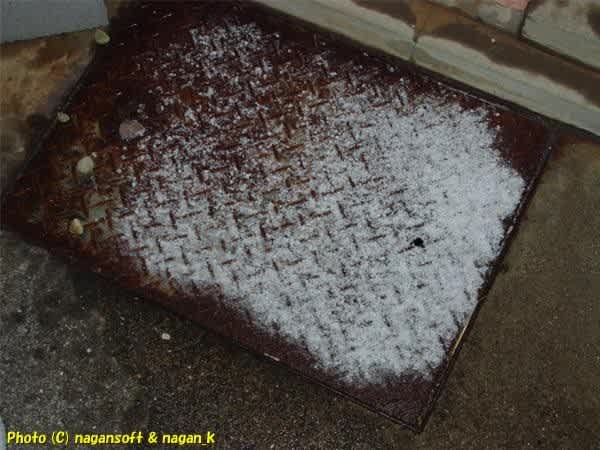 我が家の南側のどぶ蓋、それも風裏ですよ。積雪開始です。