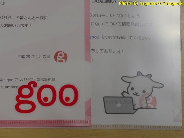 で、今年のgooさんのクリアファイルですよ。デザインがわかりやすいように白紙を差し込んで撮影です。