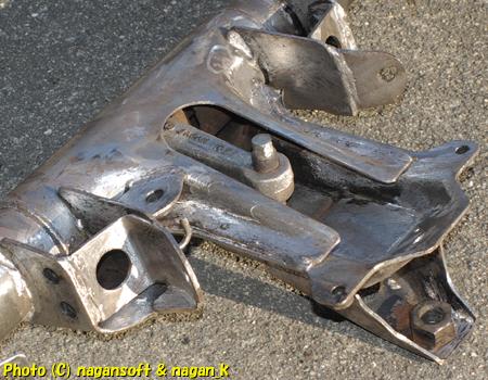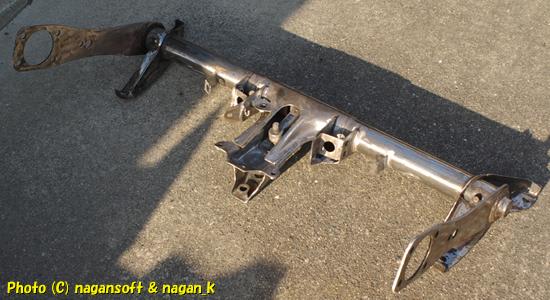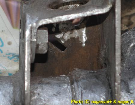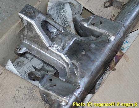 中央のところで、車体に取り付けた時に下側にあたる部分をサビ取りしました。
