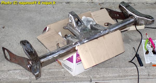 リヤサスペンションのメイン部分(メンバ)の錆びとりです。