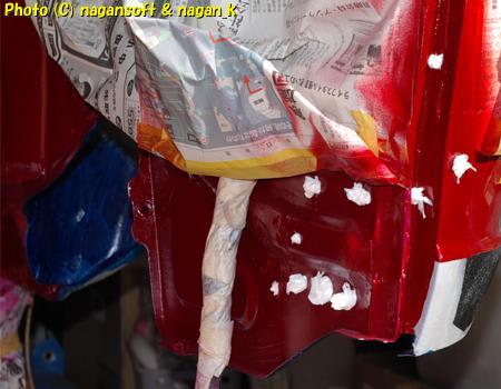 後ろから見たフェンダー部分です。作業場が狭いのでこんな写真しか撮影できません。ごめんしてね。