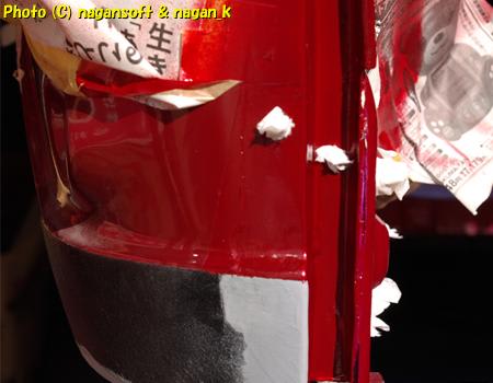 前回に吹き付けたドリップレール部分のマスキングをドキドキしながら、ちろっとスカートメクリします。