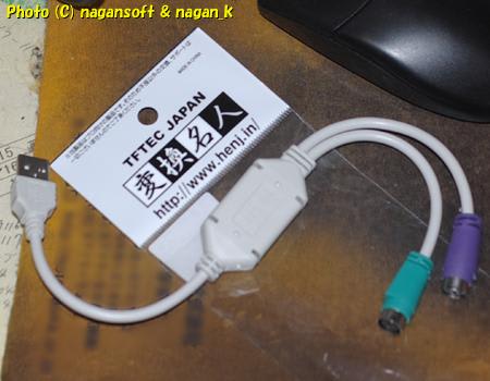 商品名が「変換名人 変換ケーブル USB-PS2変換(2分岐)」、「型番:USB-PS2」という代物です。
