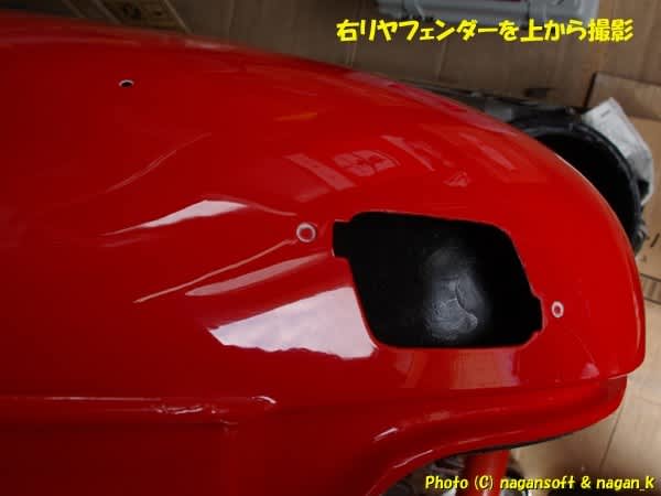 右リヤフェンダーを上から見た構図で撮影です。