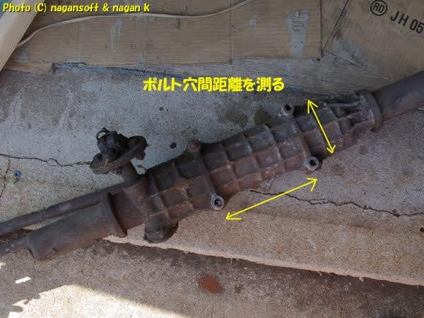 次はステアリングラックを持ち出しまして、ボルト間の距離を実測します。