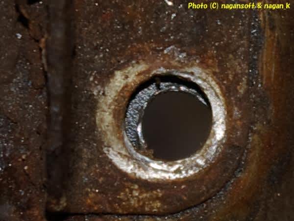 現状にてボルトを抜き取って通し穴がどの程度ズレているか確認です。