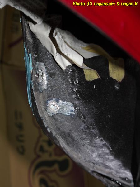 裏側、つまりフェンダー内にサビ穴貫通しています。