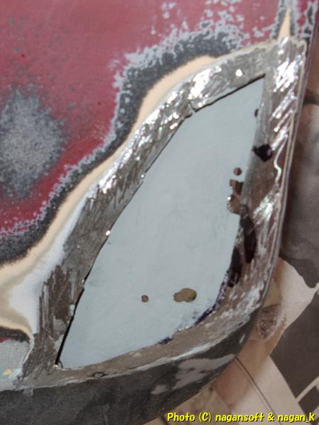 この部分って微妙に曲面なのよね。さらに、フェンダーアーチの体裁は死守しなければなりません。