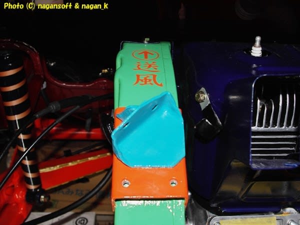 ピストンシリンダーを覆って送風機能を兼ねた保護カバーです。シュラウドという部品です。そいつの取り付けです。