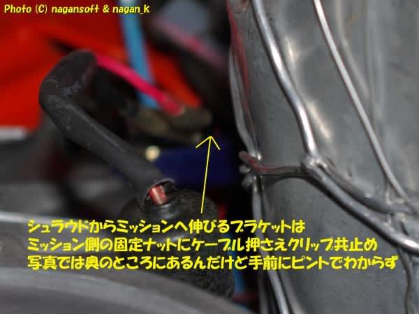 もう一つは、左一番奥のシュラウド後ろから伸びているブラケットをミッションへ固定するナット部分です。撮影したのですが前ピン下手糞写真で肝心なところがボケボケなり。