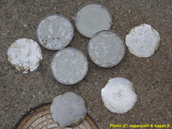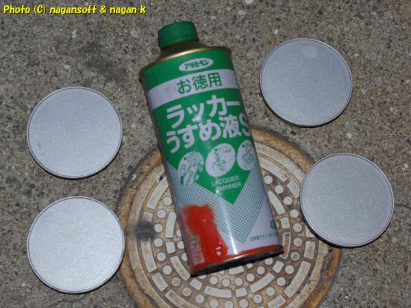 侵されても被害の少ないキャップの裏に、ラッカー薄め液を塗って5分観察です。
