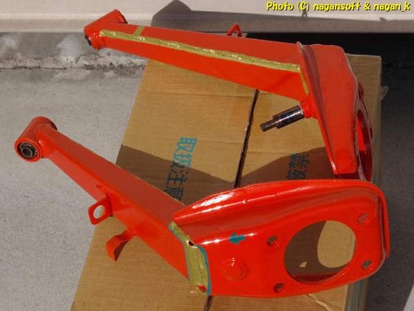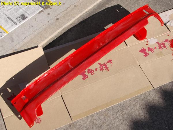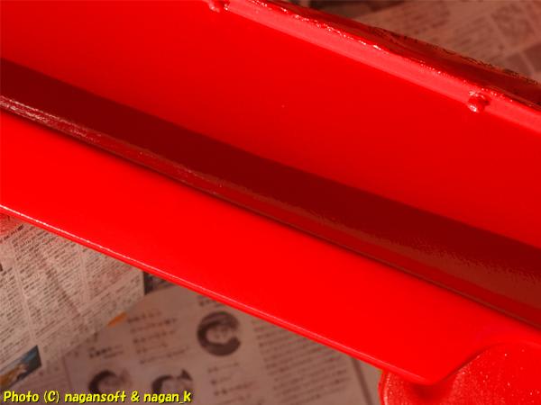 エンジンルームリヤエプロンの赤色乗せ完了です。
