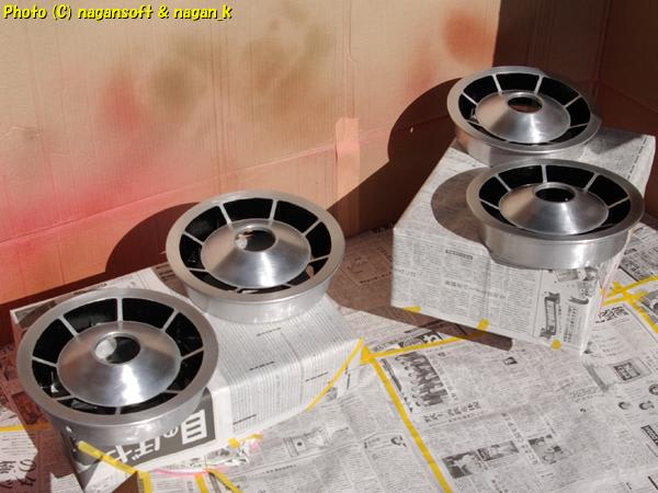 ホイールの両面に塗りますので、都合4回スプレーしなければなりません。
