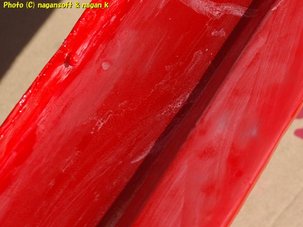 って、上塗り塗装を薄付けパテのようにするのが間違っているのですが….
