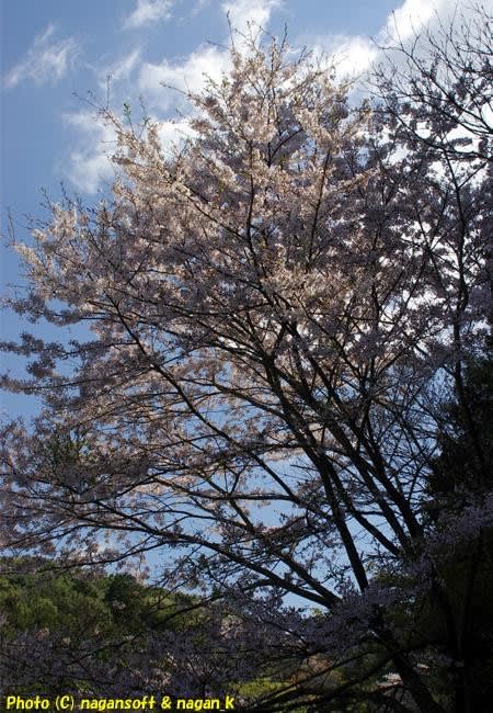 2018年4月1日のブログ:泉佐野丘陸緑地公園の大きい山桜、意賀美神社、新滝の池の桜、咲いてました