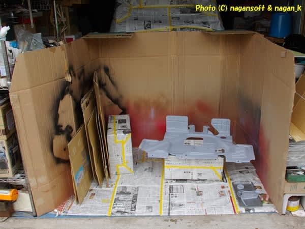 いつもの塗装ブースにすべく、もう何回も使用している大きいダンボールを引っ張り出します。