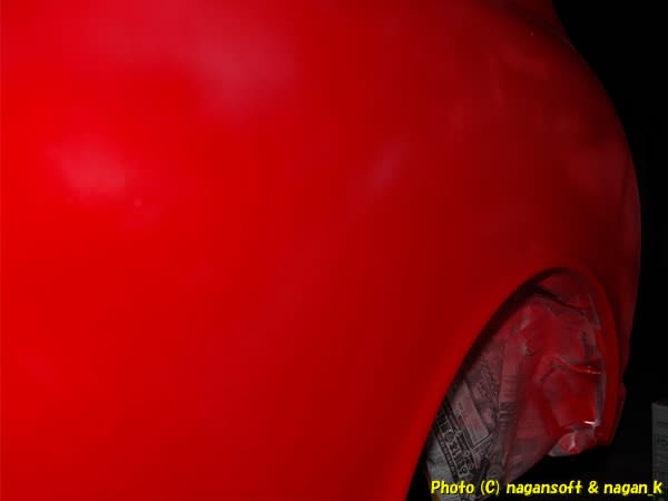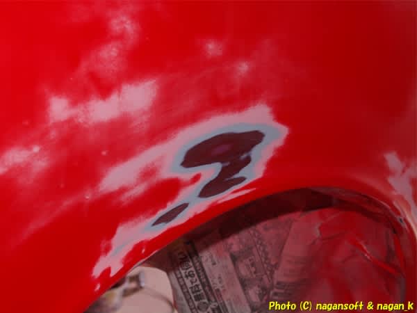 今回の研ぎ作業でピンク下地露出はいいのですが、さらにその下のプラサフ、または車体元色まで研ぎ出しした部分があります。