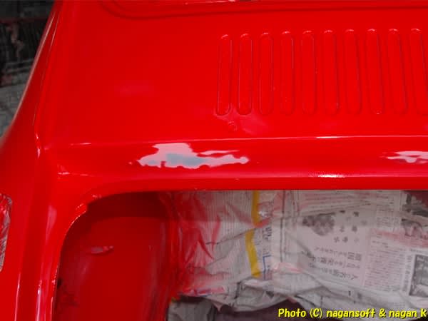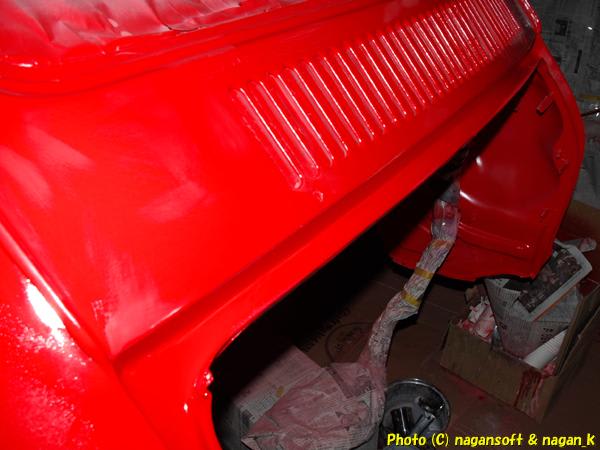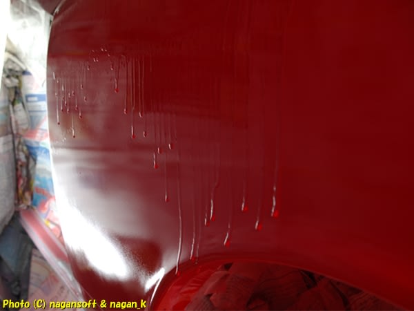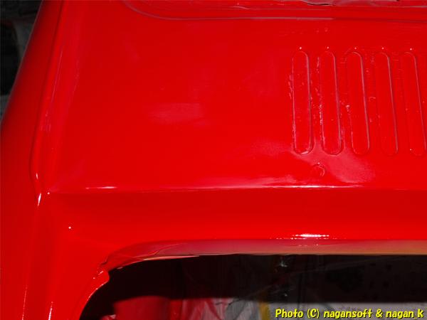 エンジンルームゲートドリップレール上部分の塗装垂れも研磨して面出し追及したらこんなことに