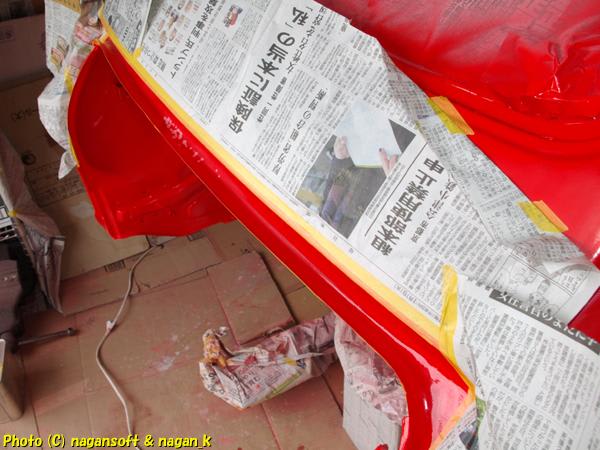 プラサフ露出しているが面は出てるようなので、そのまま赤色を重ねて隠ぺいしてやれ。と考えていたのです。