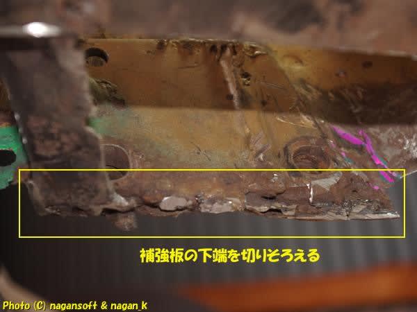 下端の残骸部分を補強鉄板縁まで削って切りそろえます。