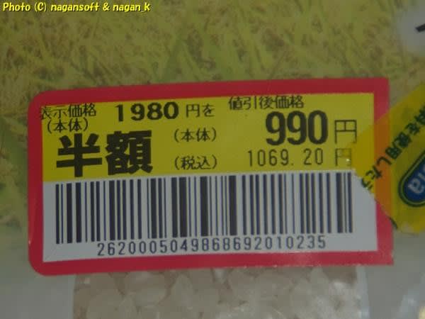 「xxxxでお米半額見つけた。半額になって2kgが990円。」