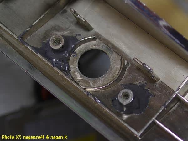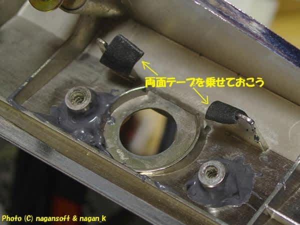 キーシリンダー左右ブレ防止のガイド部分に念のため両面テープも貼っておきました。両面テープが振動クッション剤にならないかとプチ期待しています。それとも両面テープの厚みが仇となるのか微妙かな?