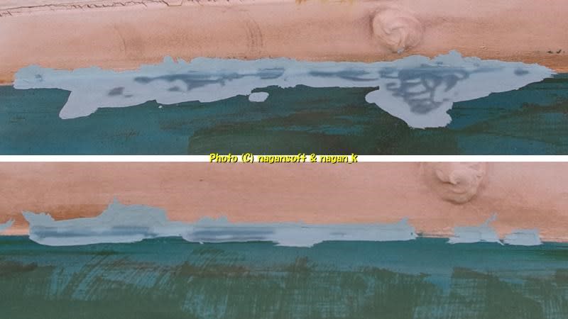 錆を削って鉄肌が露出したところは、錆止め塗料(エボローバル)を筆塗りです。