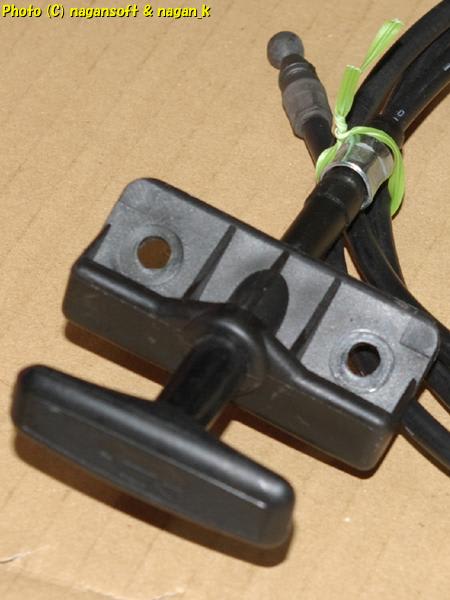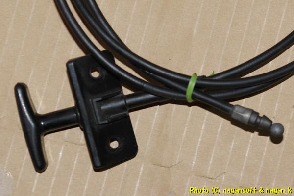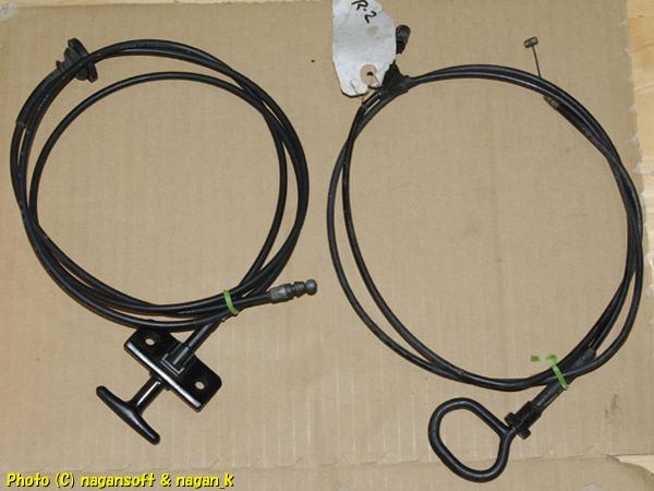 右が私のR-2から抜き取ったエンジンフードオープナーで、ワイヤー被膜ボロボロダメなやつです。