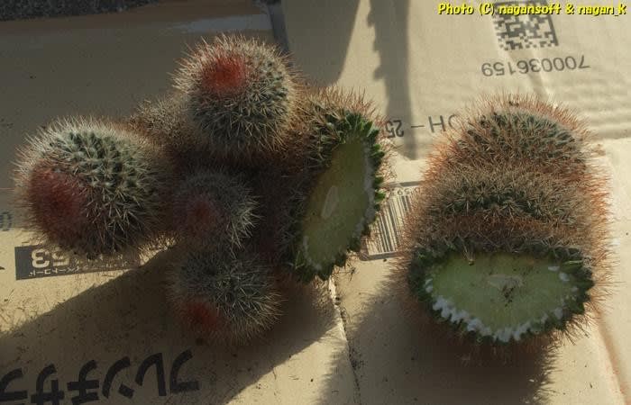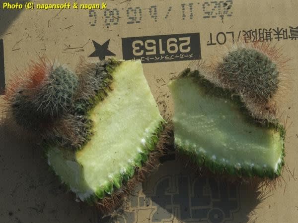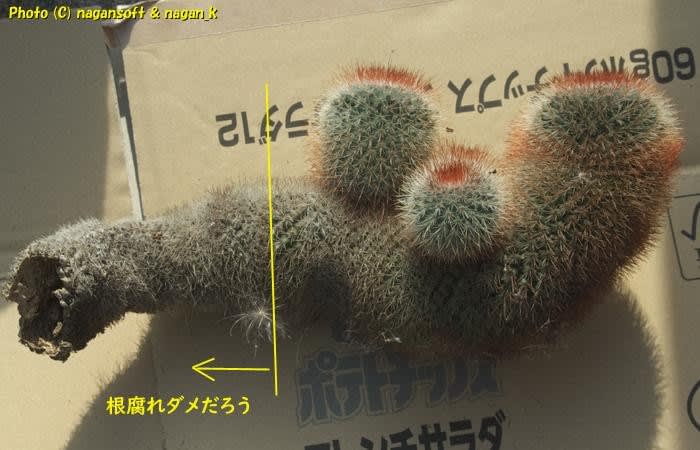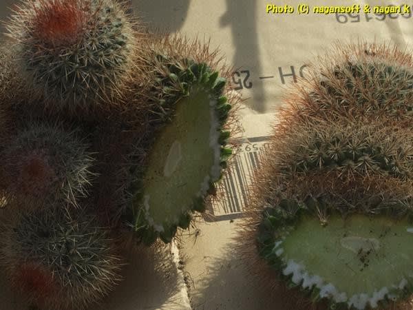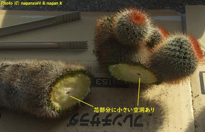サボテン君が横に伸びていたときに地面側になっている部分を観察です。