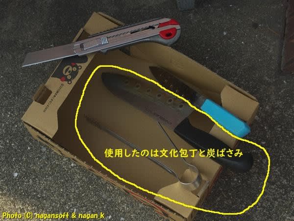 で、実際に使用したのは、文化包丁と炭ばさみです。