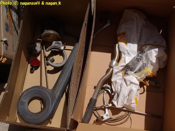 後輩の自転車部品。なにが残っているかの記念写真です。