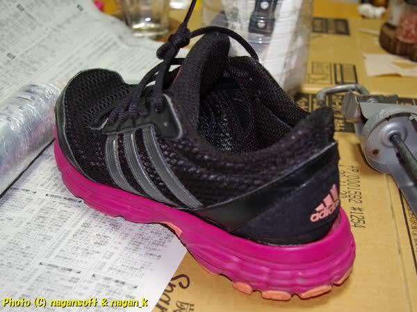 くそー、嫁がマスキングをいじっているときに、adidasのマークを汚しているのです。
