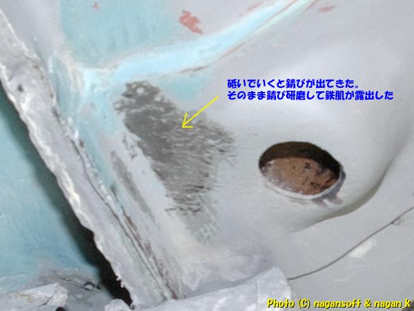 パテ研ぎしていたらジャッキポイントの付け根から小さい点錆が出現しました。